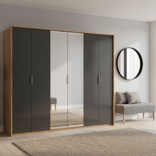 Elegancka duża szafa z lustrami Luna to nowoczesny model zaprojektowany z myślą o tych, którzy cenią funkcjonalność ora stylowy wygląd wnętrza. Jej starannie dobrane proporcje oraz przemyślany układ sprawiają, że doskonale odnajdzie się zarówno w sypialni, garderobie, jak i przestronnym przedpokoju.