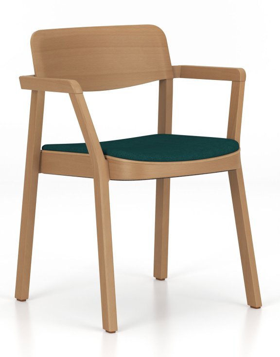 Krzesło Embla wyposażone zostało w tapicerowaną nakładkę na siedzisko.