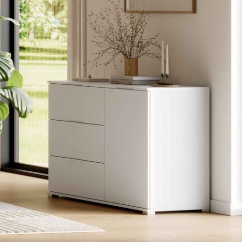 Biała komoda z szufladami i szafą doskonale sprawdzi się w każdym wnętrzu, łącząc w sobie elegancki design oraz praktyczne rozwiązania do przechowywania.