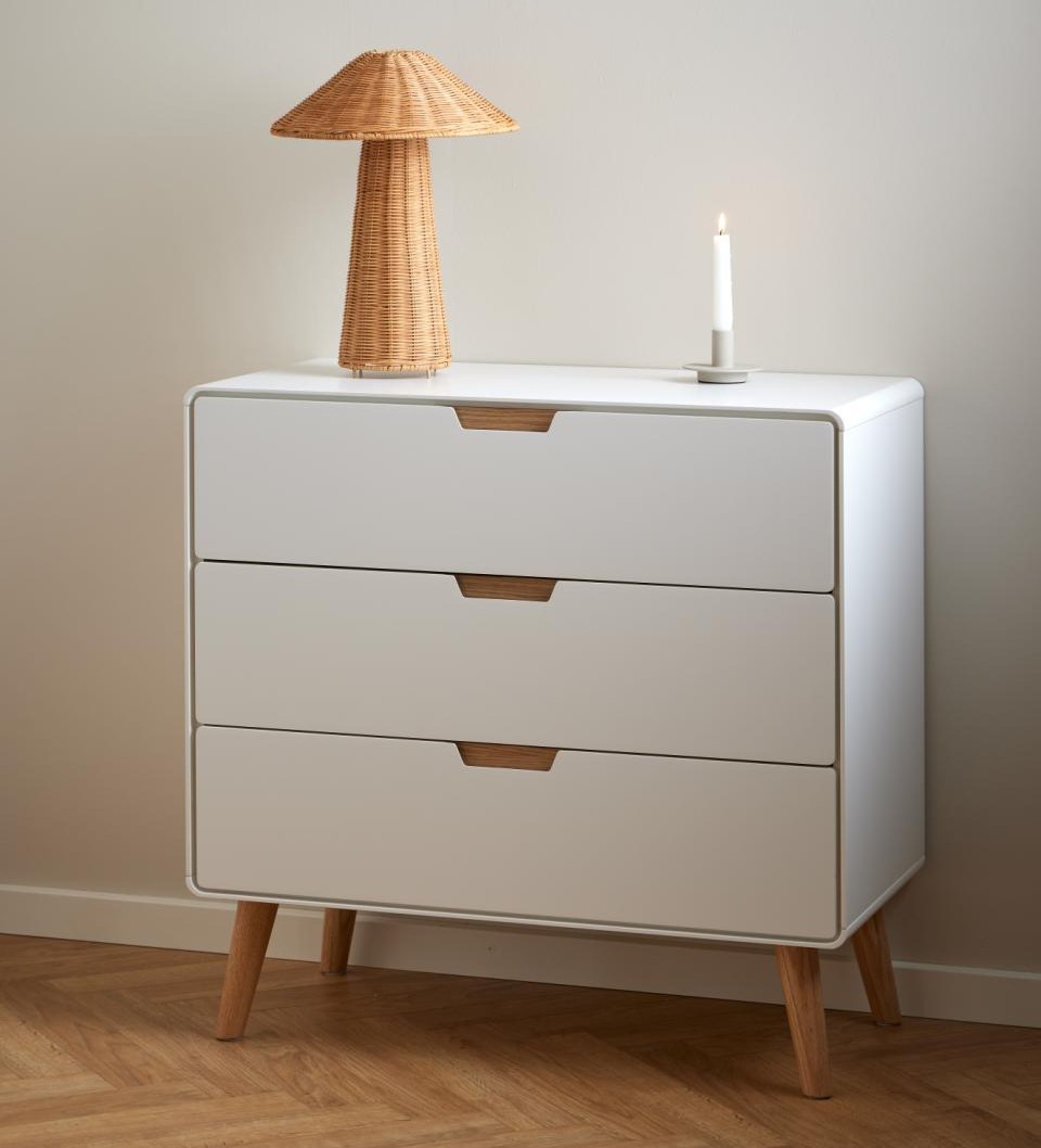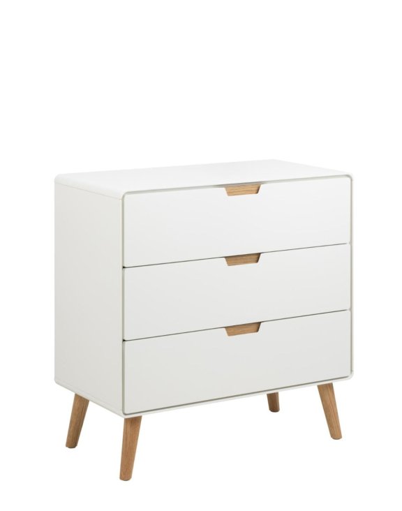 | Biała komoda Lowell z 3 szufladami i dębowymi nogami (05740) | 1149 zł |