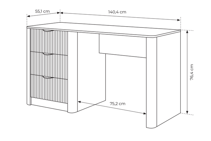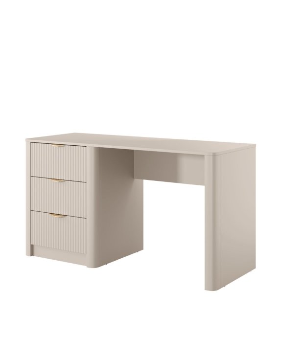 Beżowe biurko Lante N - toaletka glamour z ryflowanymi frontami