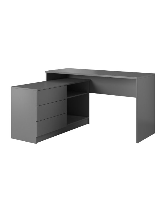 Grafitowe biurko narożne Teo z szafką, szufladami i półkami