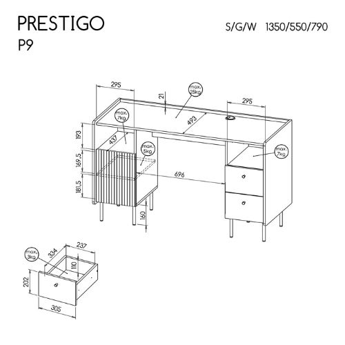 | Biurko z szufladami PRESTIGO P9 | 749 zł |