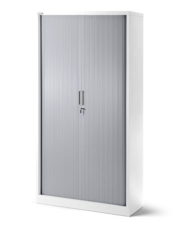 Biurowa szafa metalowa DAMIAN z przesuwnymi drzwiami w formie rolety spełnia najważniejsze zalety produktów w swojej kategorii.