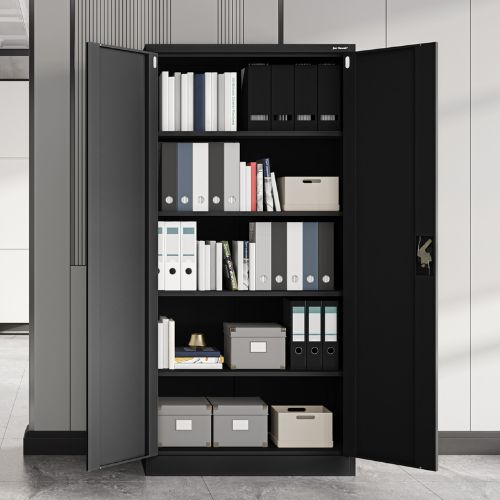 Biurowa szafa metalowa JAN marki Jan Nowak w kolorze czarnym jest niezastąpionym meblem w przestrzeni biurowej.