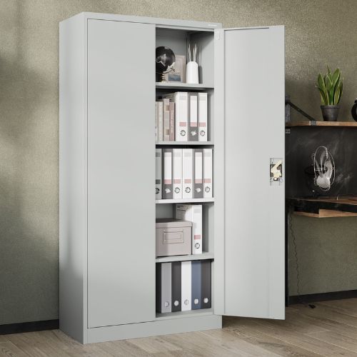 Metalowa szafa zamykana na klucz z 4 półkami o wielu