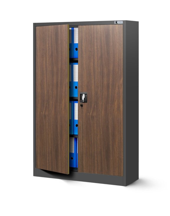 Biurowa szafa metalowa KEVIN: antracyt/orzech 90x140 cm (1386)