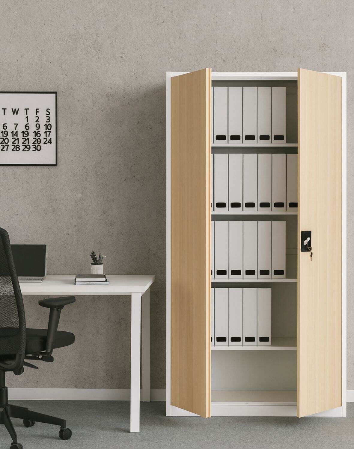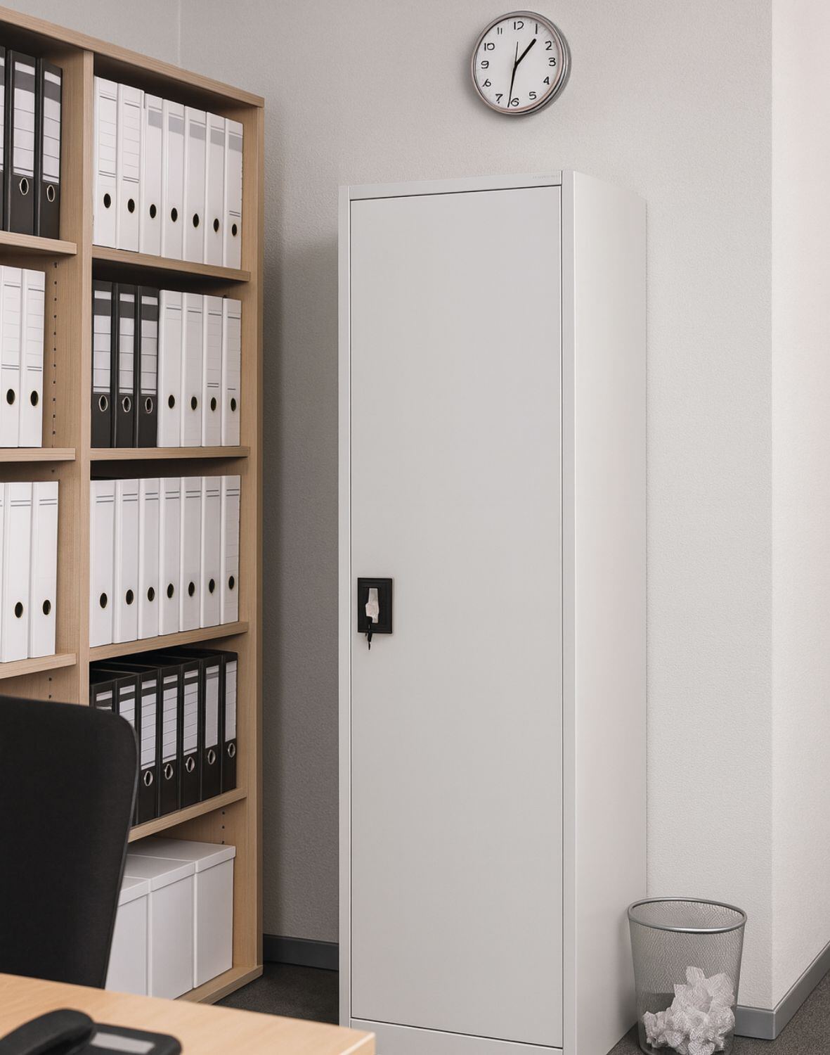 Ten rodzaj szaf to królowe biur. Metalowa szafa aktowa pomaga ogarnąć segregatory, teczki, dokumenty księgowe i całą firmową papierologię. Jeśli szukasz szafy na dokumenty zgodnej z RODO, szafa metalowa zamykana na klucz, z solidnym zamkiem, będzie najlepszym wyborem do kancelarii, biura rachunkowego czy urzędu.