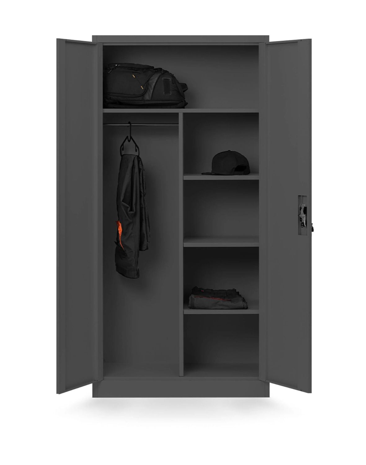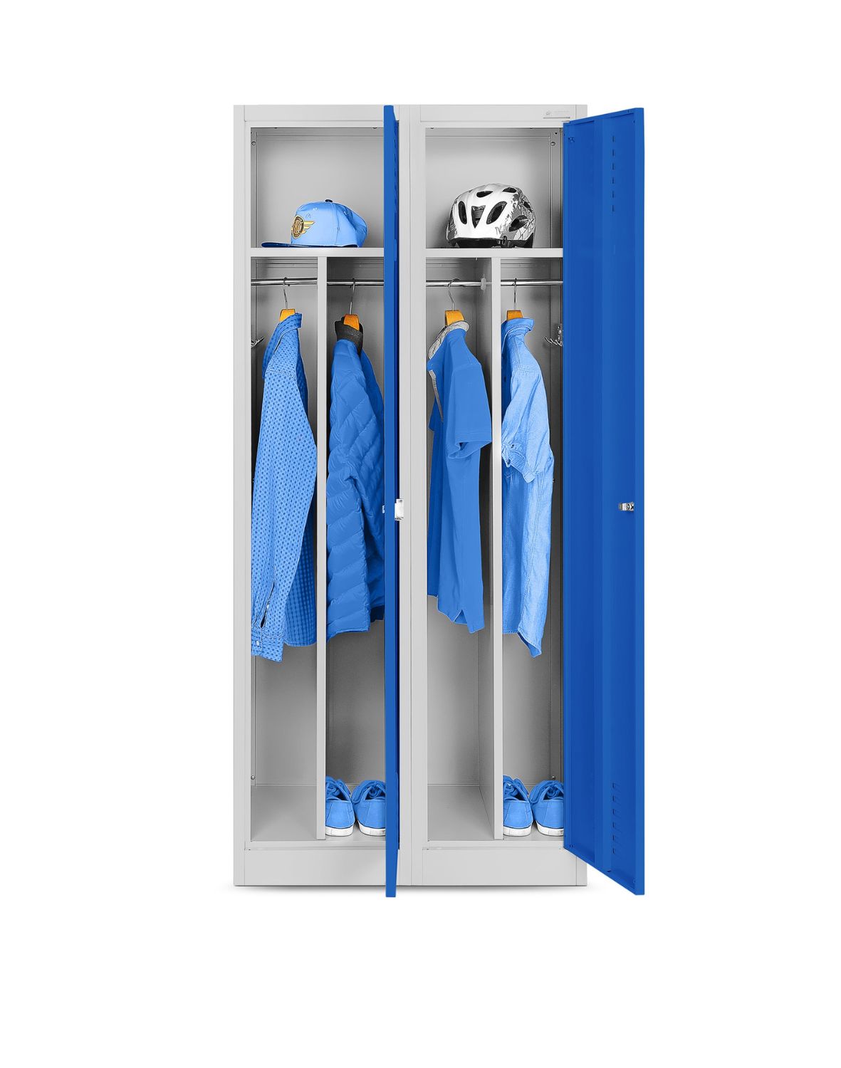 Stworzone z myślą o przechowywaniu odzieży pracowników. Mają drążki, półki, czasami podział na „czyste” i „brudne”. Tego typu szafa socjalna metalowa świetnie sprawdza się w halach produkcyjnych, firmach budowlanych, magazynach i wszędzie tam, gdzie pracownicy potrzebują bezpiecznej szafy na ubrania robocze.