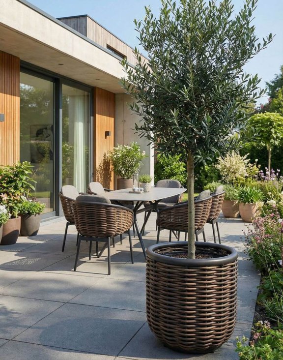 Materiał ten do złudzenia przypomina naturalną wiklinę, a jednocześnie zapewnia znacznie większą trwałość – jest odporny na działanie promieni UV, wilgoci i zmiennych temperatur, co czyni donicę idealnym wyborem do użytku zewnętrznego przez cały sezon.