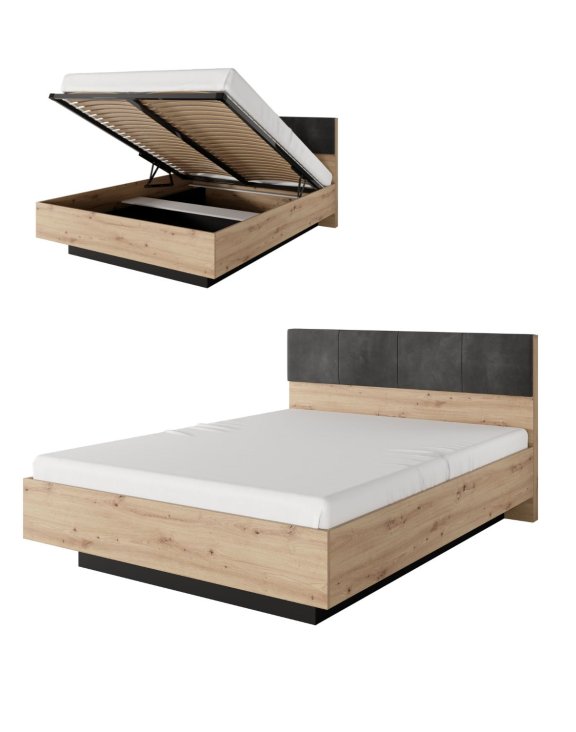 Łóżko drewniane z tapicerowanym zagłówkiem i pojemnikiem Tally C 160