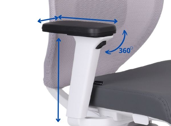 Podłokietniki R12 regulowane w czterech płaszczyznach, co daje pełną swobodę w ustawieniu ich w najbardziej komfortowej pozycji: