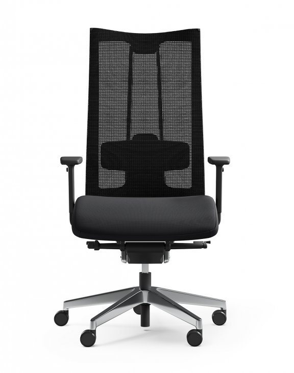 Oparcie to plastikowa elastyczna rama wsparta na aluminiowym kręgosłupie, tapicerowane siatką w kolorze czarnym, która odpowiednio dopasowuje się do kształtu pleców użytkownika. W oparciu znajdą Państwo podpórkę lędźwiową o regulowanej wysokości i głębokości (odległości od siatki - im bliżej tym większe odczucie podpórki dla Użytkownika).