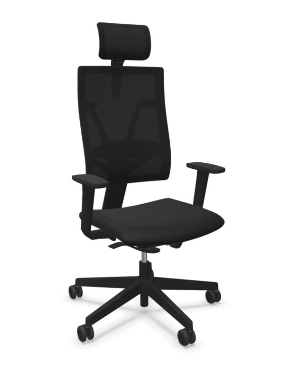Podłokietniki 2-D, regulacja wysokości i szerokości.Zagłówek o regulowanej wysokości.