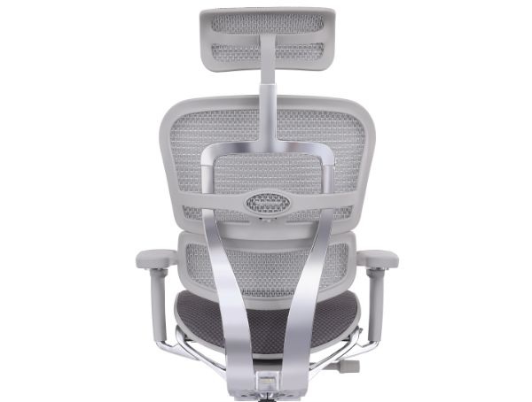 Zagłówek i oparcie tapicerowane są innowacyjną siatką w kolorze szarym.