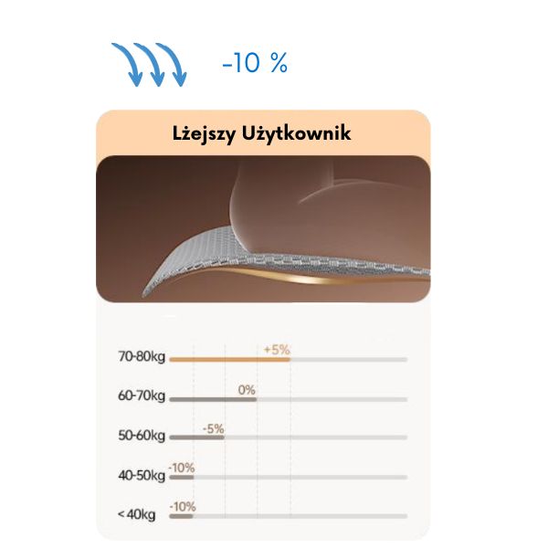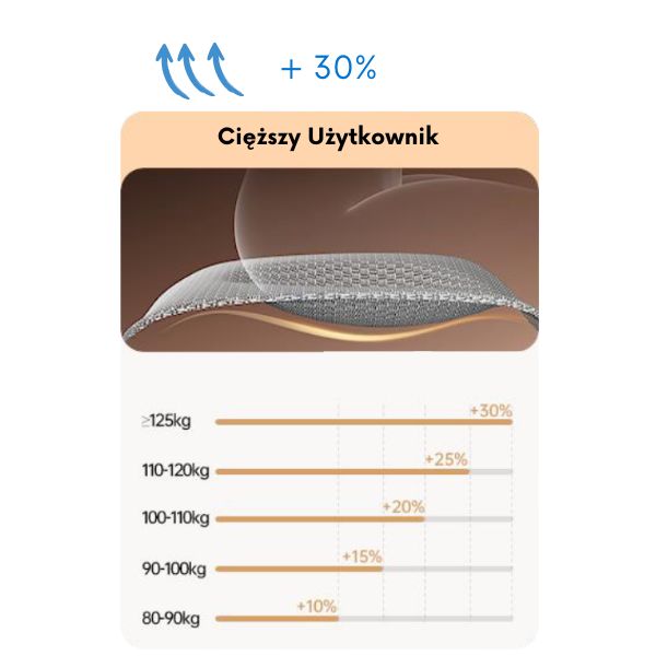 Wskazana regulacja naciągu pozwoli dostosować sprężystość siedziska do wagi Użytkownika
