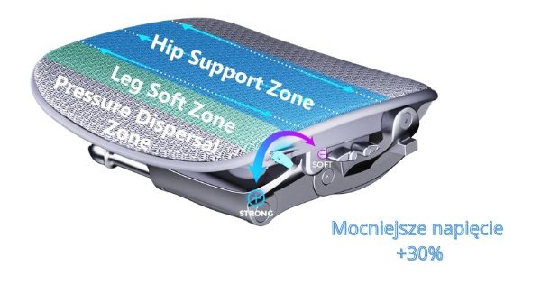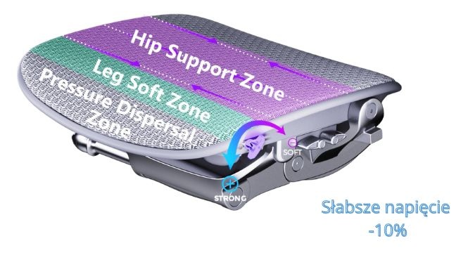 Siatka oparcia posiada 5 STREF o zróżnicowanym napięciu, tak by idealnie dopasować się do ciała Użytkownika,