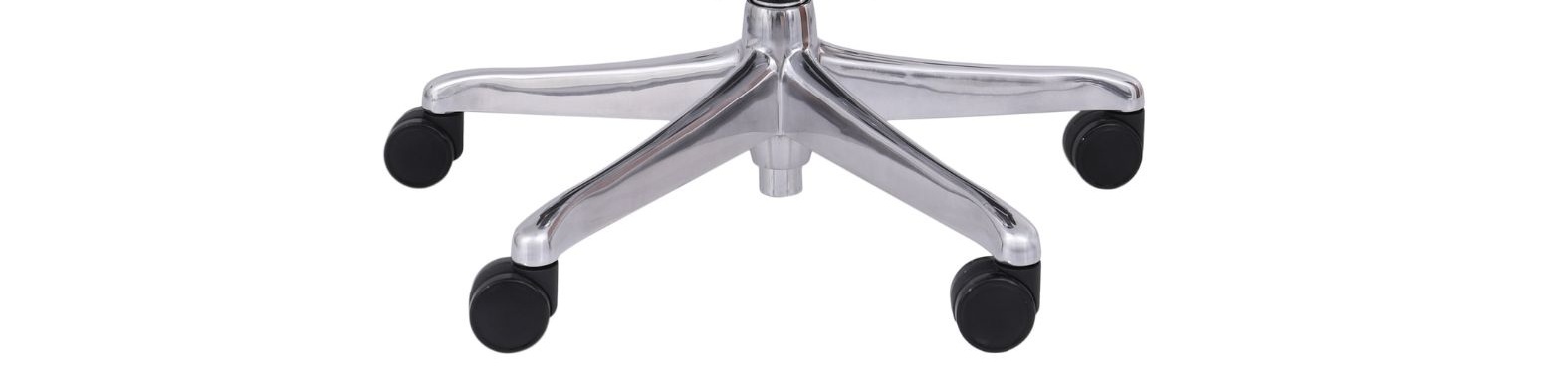 Trwała, aluminiowa podstawa jezdna wyposażona została w miękkie kółka, ograniczające zużycie powierzchni twardych (parkiet, panele, terakota).