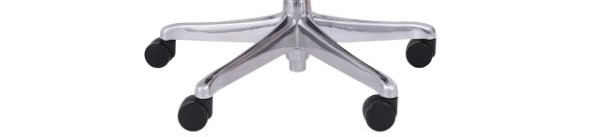 Trwała, aluminiowa podstawa jezdna wyposażona została w miękkie kółka, ograniczające zużycie powierzchni twardych (parkiet, panele, terakota).