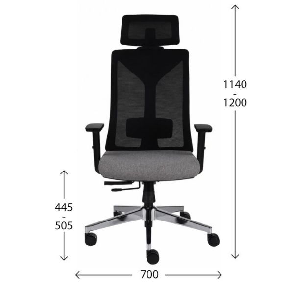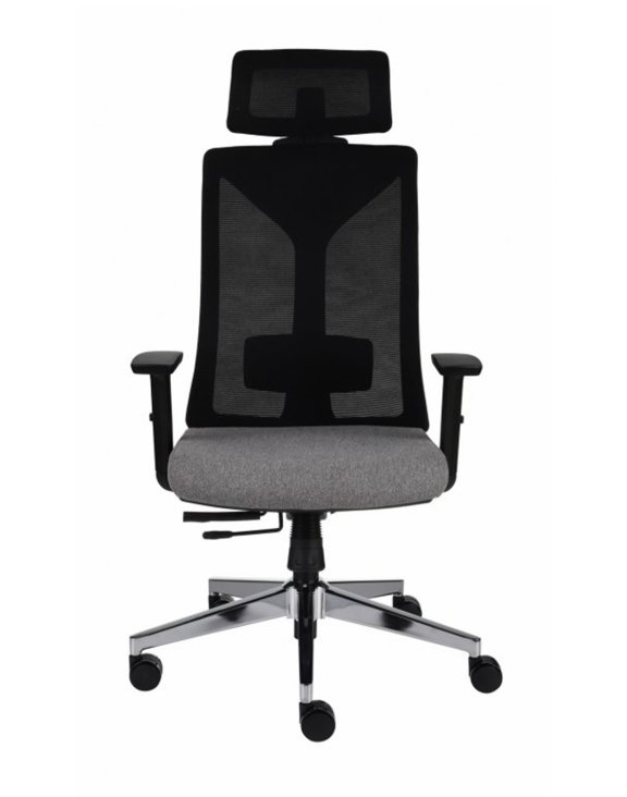 Oparcie oraz zagłówek tapicerowane są trwałą siatką w kolorze czarnym. Świetnie dopasowuje się do pleców Użytkownika, oddycha co jest szczególnie ważne w miesiącach letnich,
