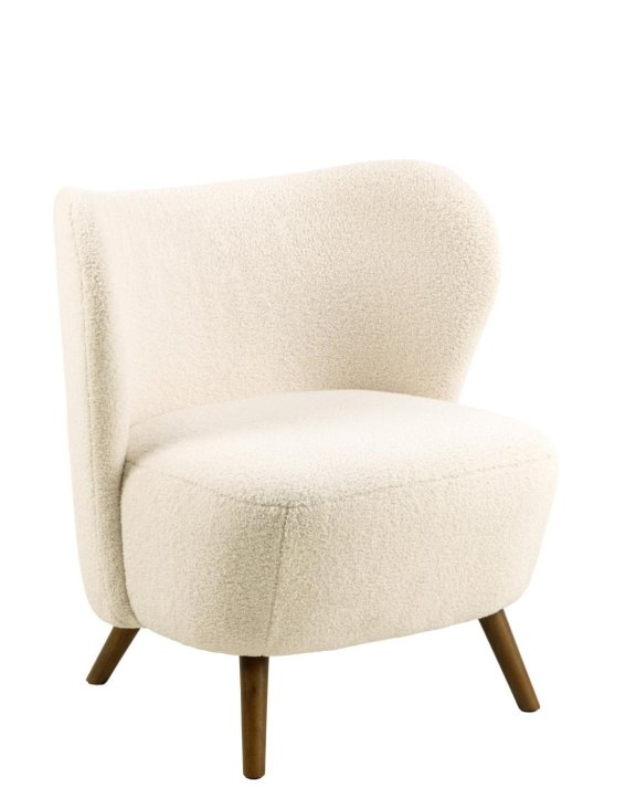 Uwagę zwraca designerska tkanina Orson typu boucle, połączona z nóżkami wykonanymi z drewna kauczukowego.