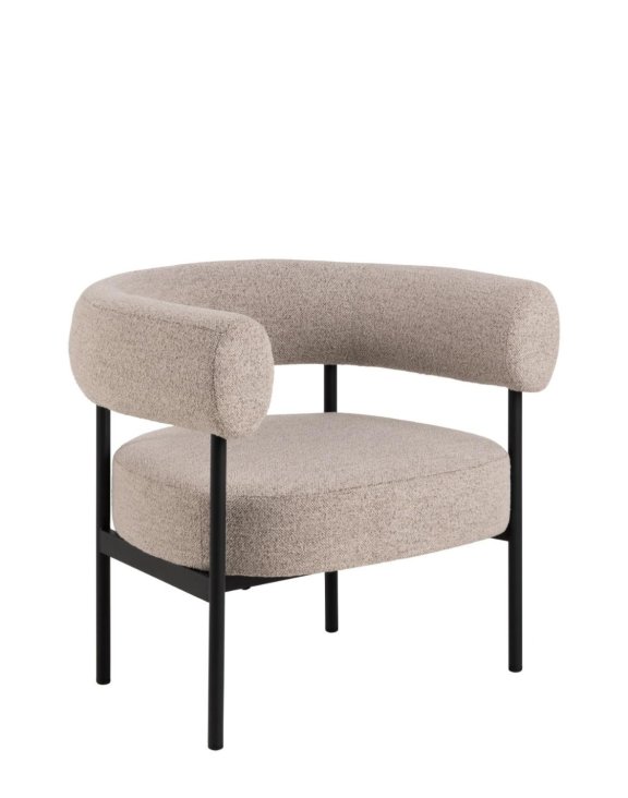 Fotel wyposażony jest w tapicerkę z wyraźną teksturą typu boucle (Monza) w eleganckim odcieniu beżu, a sprężyny kieszeniowe zapewniają miękkie i wygodne siedzenie.