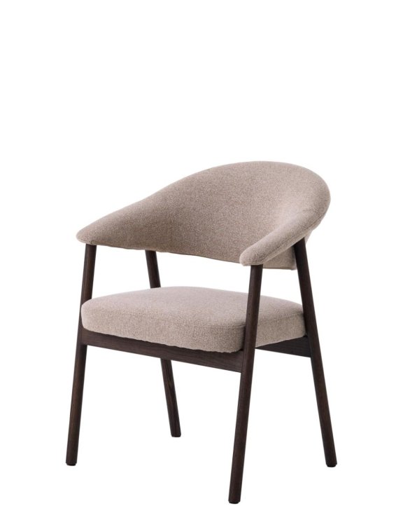 Krzesło tapicerowane jest tkaniną Lake 120, której wyjątkowa faktura została uzyskana dzięki zastosowaniu dekoracyjnej przędzy o pętelkowym splocie.