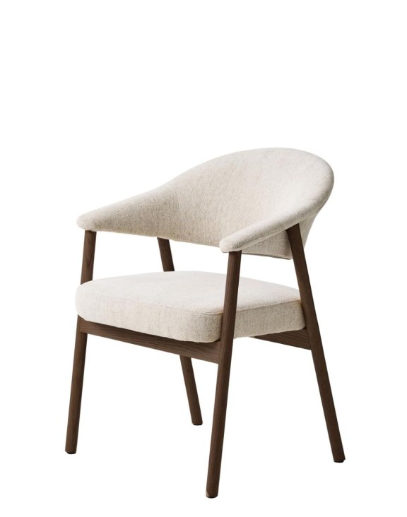 Zaokrąglony kształt siedziska zapewnia komfort podczas dłuższego siedzenia, a miękka tapicerka sprawia, że fotel idealnie sprawdzi się zarówno przy stole, jak i w kąciku wypoczynkowym.