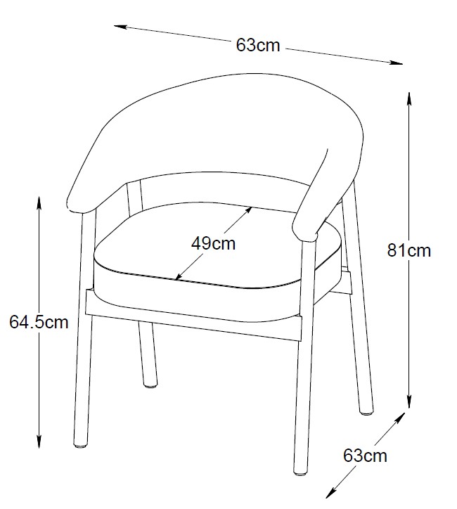 Wymiary: szerokość: 63 cm, wysokość: 81 cm, głębokość: 63 cm.