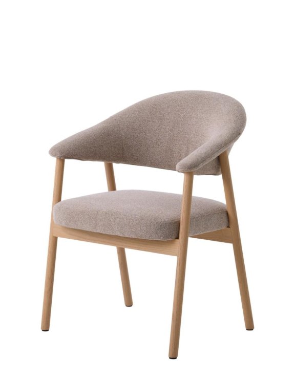 Zaokrąglony kształt siedziska zapewnia komfort podczas dłuższego siedzenia, a miękka tapicerka sprawia, że fotel idealnie sprawdzi się zarówno przy stole, jak i w kąciku wypoczynkowym.