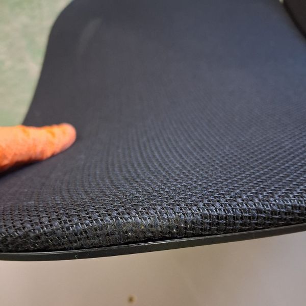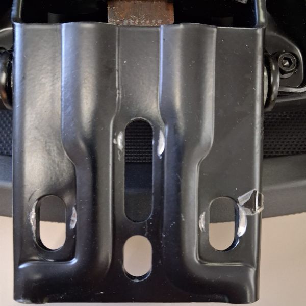 Fotel posiada przetarcie na oparciu oraz ślady montażu. Zdjęcia uszkodzeń poniżej: