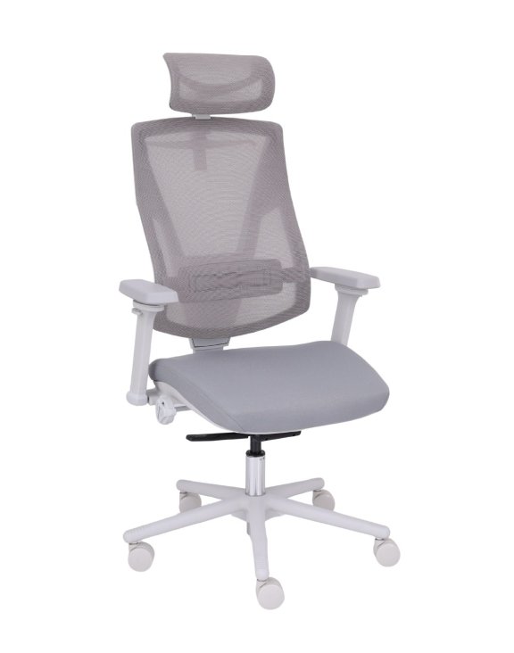 Fotel Futura 4S Grey Plus posiada praktyczny regulowany zagłówek (3D) pozwalający na wygodne wsparcie głowy podczas pracy i chwil relaksu. Zagłówek wyposażono w regulację wysokości, głębokości a także regulację obrotową wokół poziomej osi.