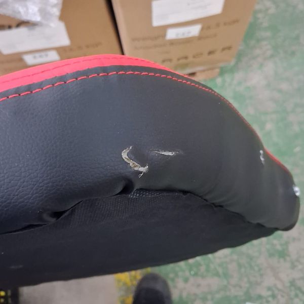 Fotel posiada uszkodzone siedzisko. Zdjęcia uszkodzeń poniżej:
