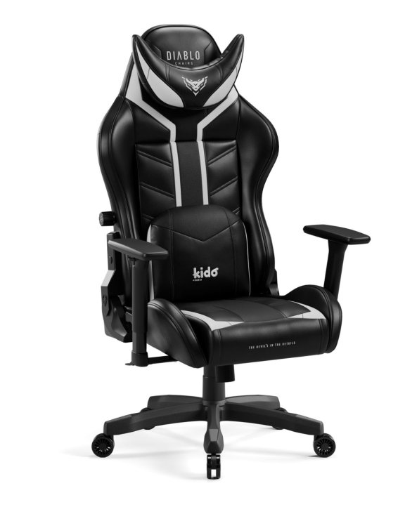 Fotel gamingowy dla dziecka X-Ray Kido by Diablo w kolorze czarno-białym, wspiera ergonomiczną postawę Twojej pociechy.