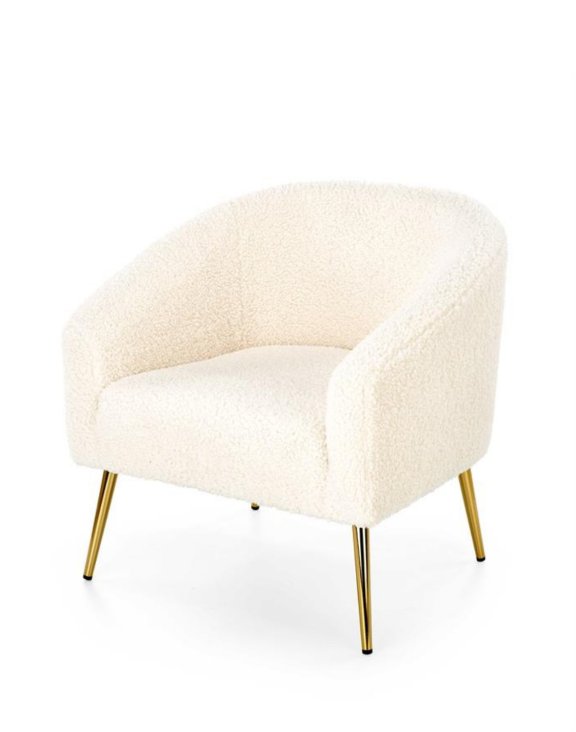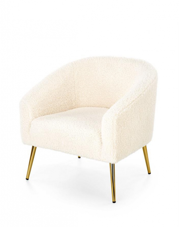 Fotel Grifon marki Halmar to mebel w nowoczesnym stylu przykuwający uwagę nietuzinkowym wykonaniem i niezwykle przytulną tkaniną boucle.