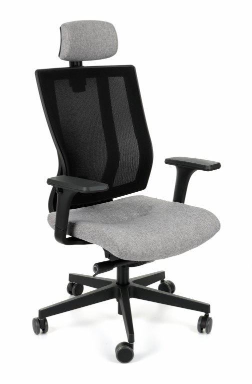 Prezentowana wersja BS HD oznacza CZARNY (B) stelaż fotela (rama oparcia, podłokietniki) oraz siatkowe oparcie (S) i tapicerowany regulowany zagłówek (HD).