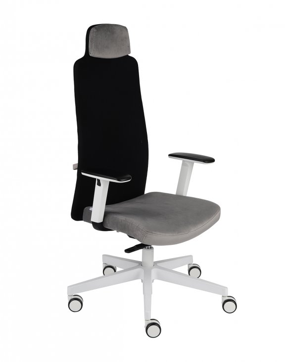 Wersja "W" oznacza białe elementy wykończeniowe: korpus podłokietnika, siłownik, kółka, podstawa jezdna. W naszej ofercie znajdą Państwo także wersję "B" (kliknij) gdzie analogicznie wskazane elementy wykonano w kolorze czarnym,