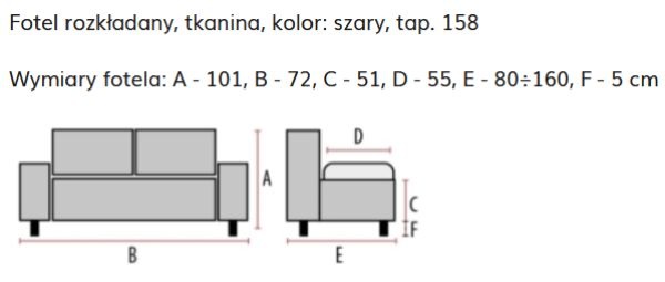 Tapicerowany miękką, wytrzymałą tkaniną w uniwersalnym szarym kolorze (tap. 158), doskonale wpasuje się w każde wnętrze – zarówno nowoczesne, jak i klasyczne.