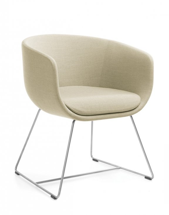NU to lekki, tapicerowany, kubełkowy fotelik o nowoczesnej stylistyce, idealny do lobby i poczekalni.