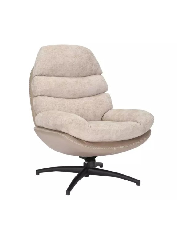 Dzięki tapicerce z miękkiej tkaniny w kolorze beżu oraz eleganckiemu tyłowi z syntetycznej skóry, fotel prezentuje się nowocześnie, a jednocześnie przytulnie.