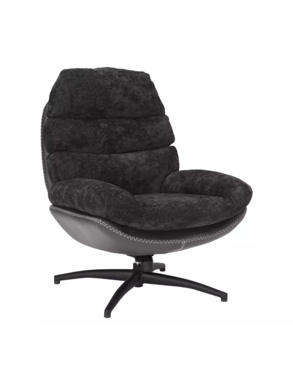Dzięki tapicerce z miękkiej tkaniny w kolorze czarnym oraz eleganckiemu tyłowi z syntetycznej skóry, fotel prezentuje się nowocześnie, a jednocześnie przytulnie.