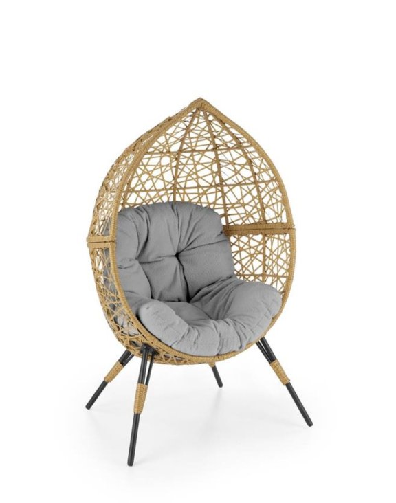 Całość fotela jest w kształcie kokonu, wyplecionego starannie z rattanu syntetycznego w kolorze naturalnym.