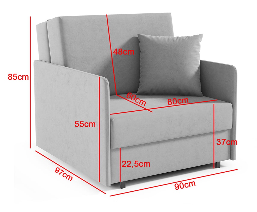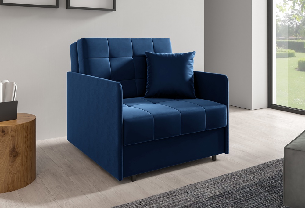 Sally I to wygodny, jednoosobowy fotel rozkładany typu amerykanka, który idealnie sprawdzi się w kawalerce, pokoju młodzieżowym, gabinecie czy małej sypialni.