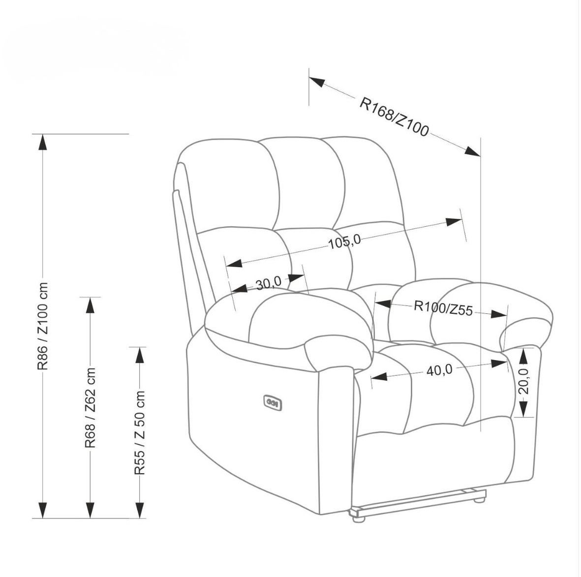 Model Amore został wyposażony w elektryczną funkcję rozkładania, dzięki czemu z łatwością możesz ustawić fotel w najbardziej komfortowej pozycji.