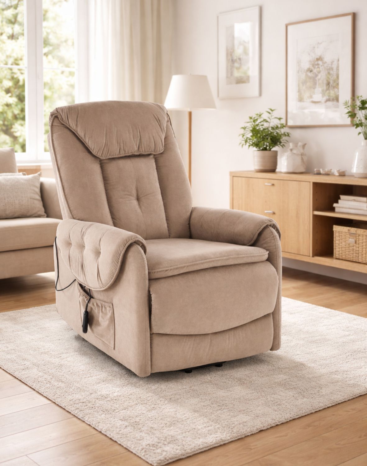 | Fotel Horton z funkcją elektrycznego rozkładania i pionizacji, beżowy welwet | 1609 zł |