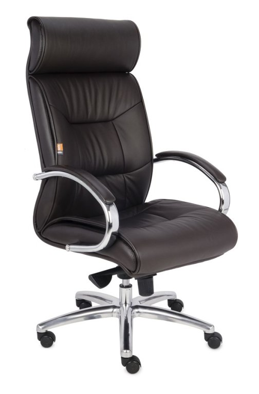 Niezwykle komfortowy SKÓRZANY fotel biurowy o klasycznej stylistyce, wyraźnych profilowaniach.