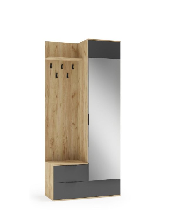 | Garderoba do przedpokoju z lustrem Coral, dąb złoty/antracyt | 799 zł |