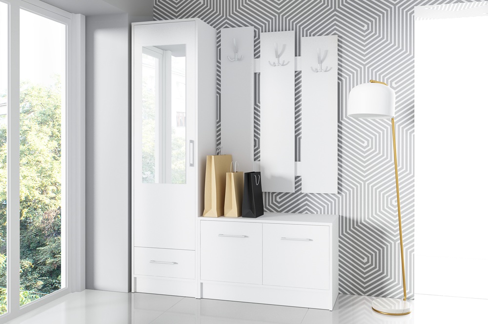 | Białe meble do przedpokoju - garderoba z szafą i lustrem Maxi | 1079 zł |