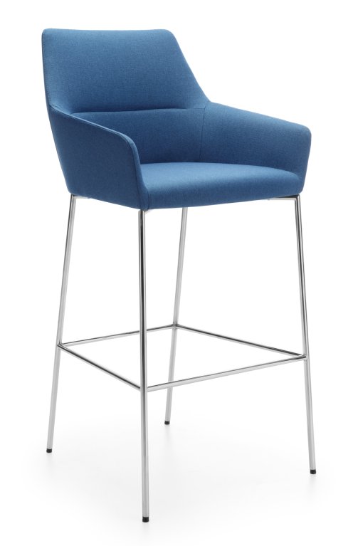 Krzesło barowe z kubełkowym, tapicerowanym siedziskiem.
