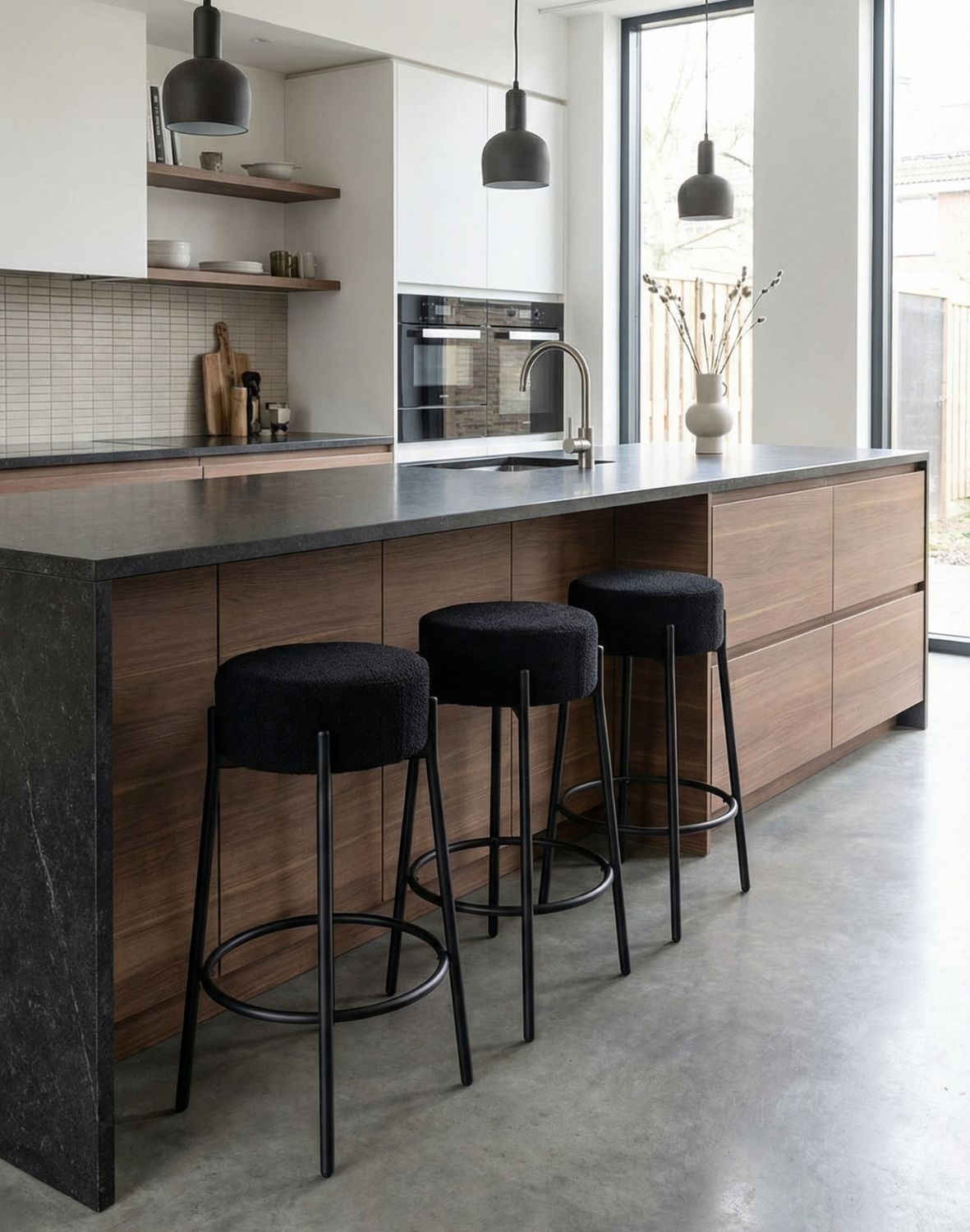 Hoker do kuchni z podnóżkiem Holly marki Avida Design to nowoczesny i designerski mebel, który doskonale łączy minimalistyczny styl z komfortem użytkowania.